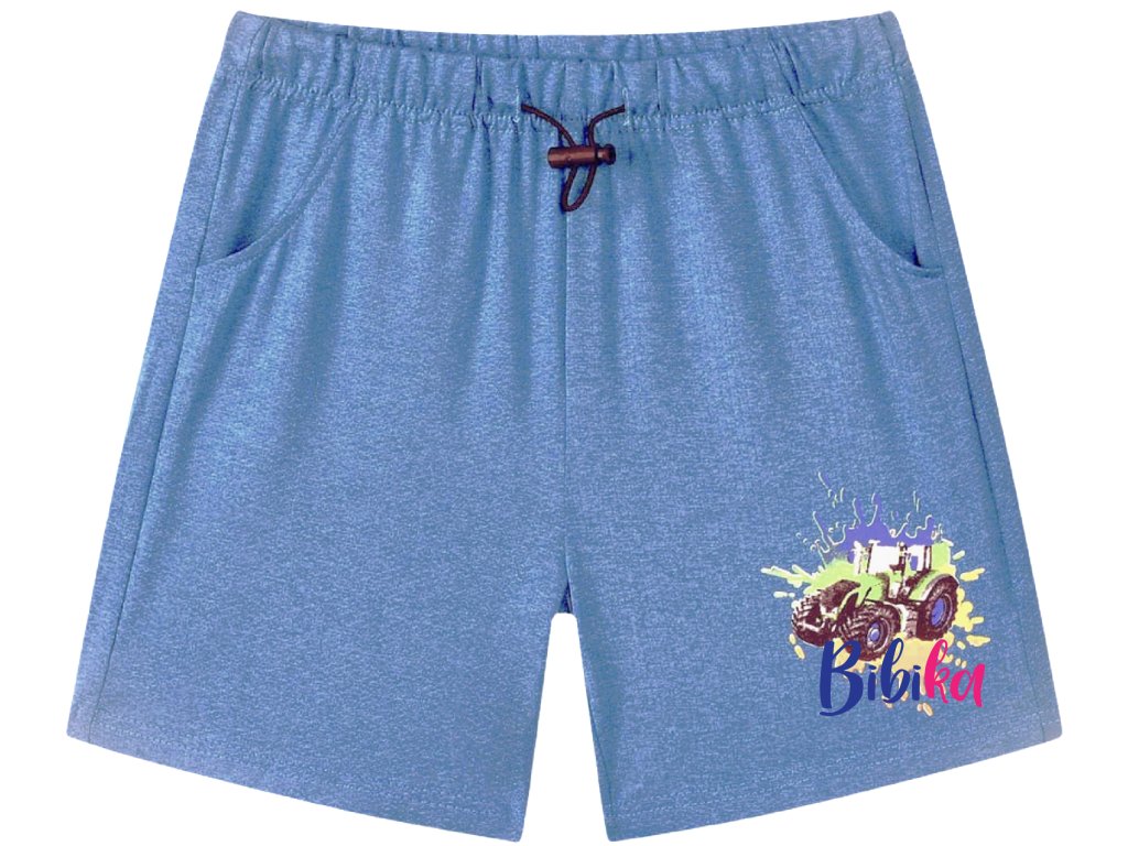 Velmi jemné a příjemné chlapecké šortky s parádním TRAKTOREM na nohavici.