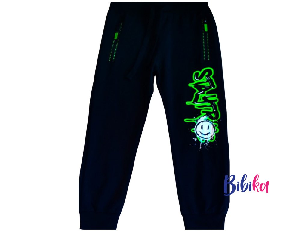 KUGO- Chlapecké tepláky Smajlík černé e zelenou