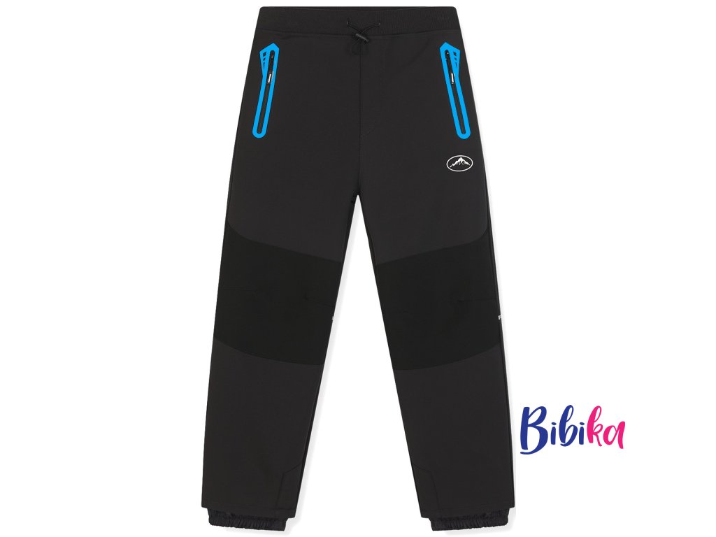 Chlapecké softshellové kalhoty zateplené černé s modrým zipem