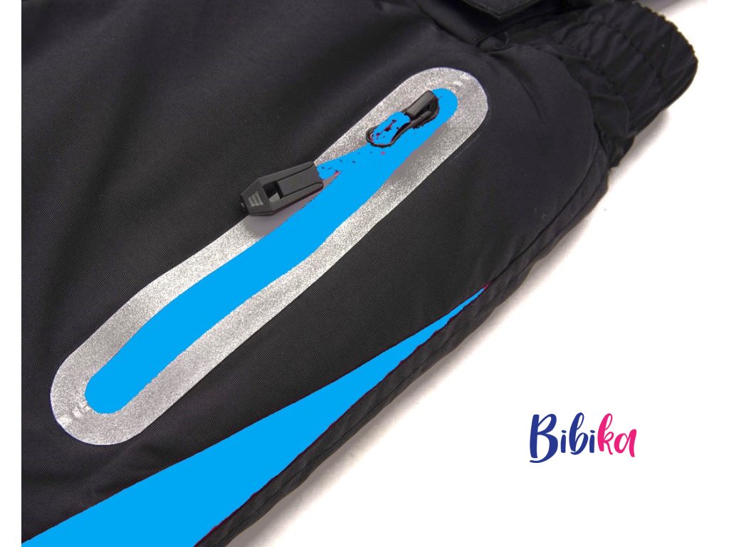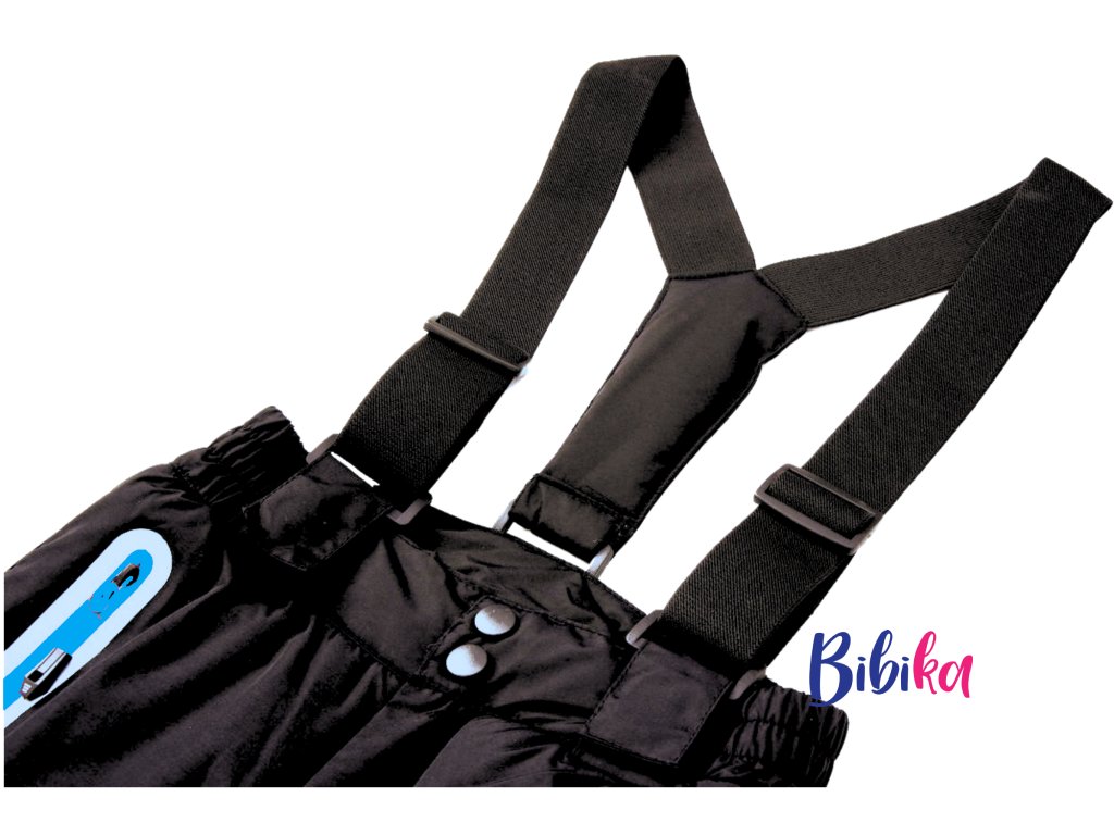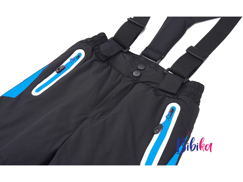 KUGO-Chlapecké zimní šusťákové lyžařské kalhoty na kšandy-černomodré