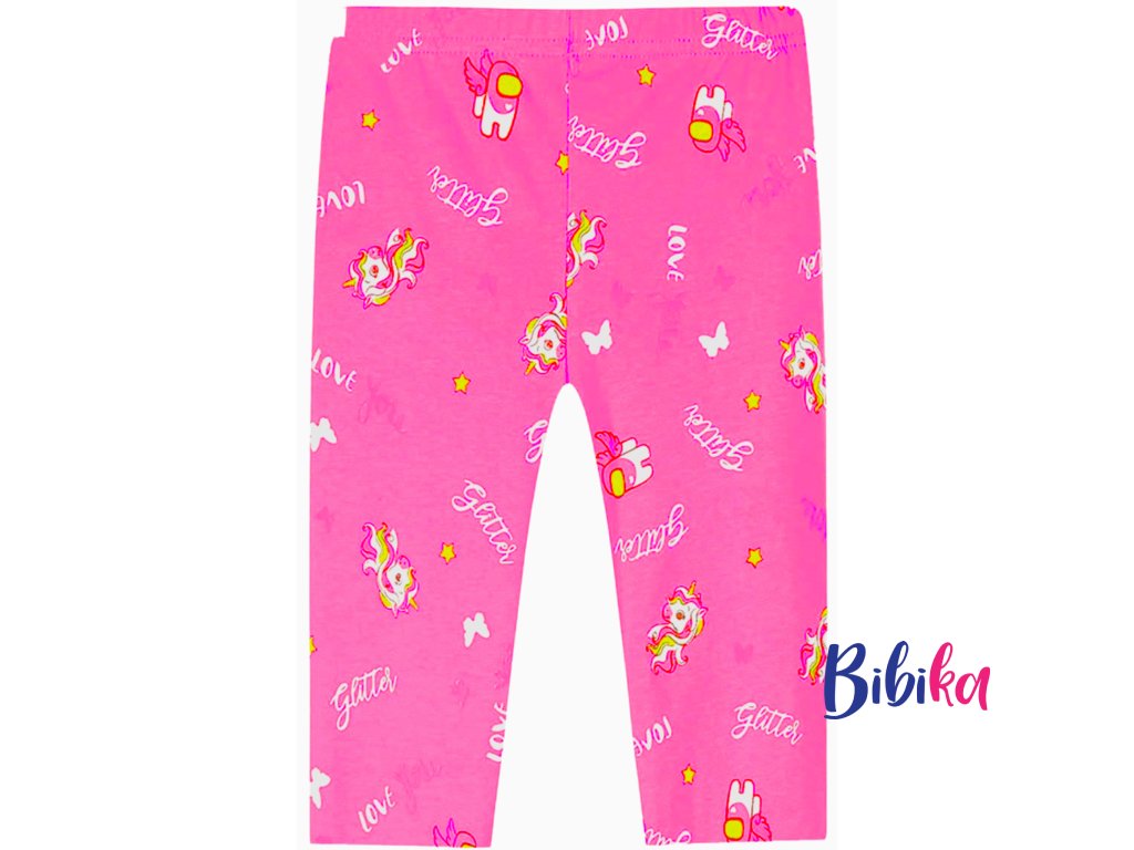 KUGO-Dívčí 3/4 leginy Jednorožec bavlněné tmavě růžové