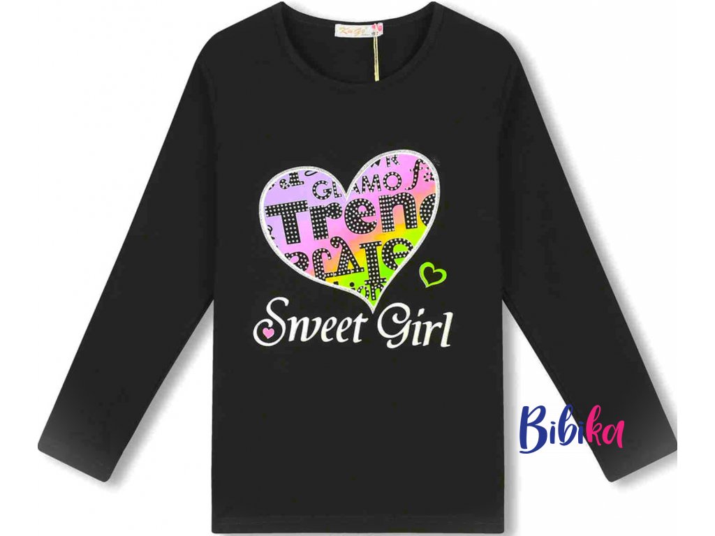 KUGO-Dívčí triko dlouhý rukáv SWEET GIRL černé