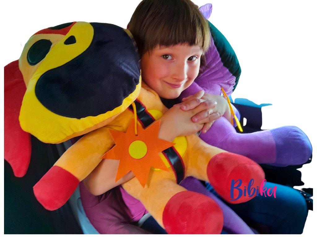 Plyšová hračka z velmi měkkého plyše lze použít i do postele jako velký polštář.